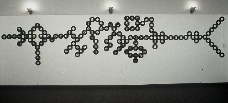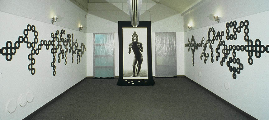 RICHARD L. DANA ARCHIVES CURRENT SITE Installation: TWO SIDES SITE: Artomatic; Washington, DC MEDIA: Charcoal on paper; wood; fabric; rice; 240 reproductions of original drawings on paper in plastic octagons DIMENSIONS: 9 x 15 x 25 feet DATE: 1998 view high-res version OTHER VIEWS (click for larger image) 2. Two Sides (detail - right side) 3. Two Sides (detail)
